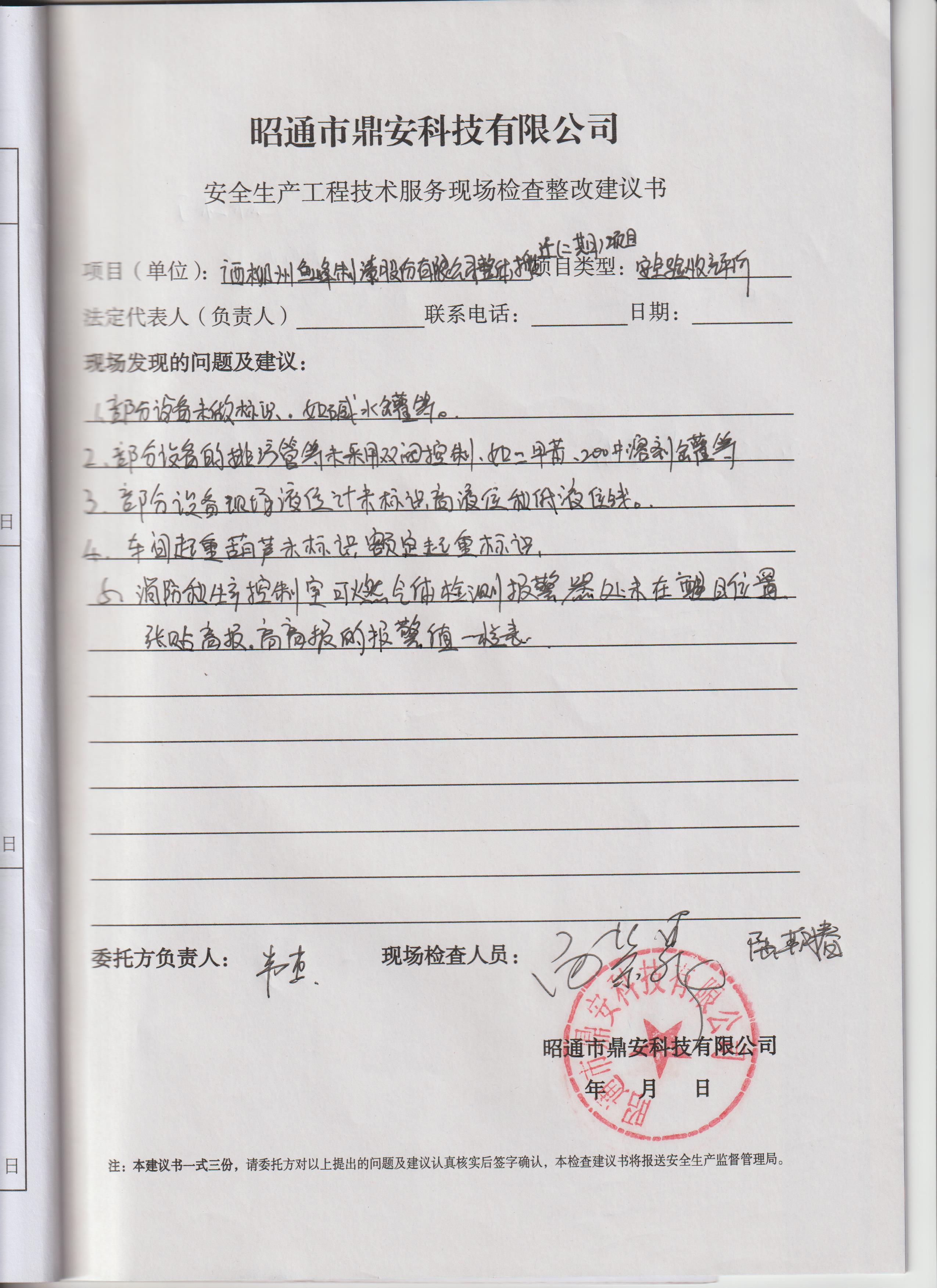 項目名稱 | 廣西柳州魚峰制漆股份有限公司整體搬遷(二期)項目安全驗收評價報告 | 合同編號 | DAAPKX2023- | |||||