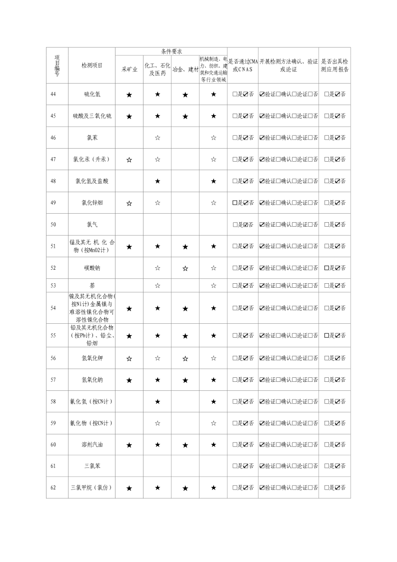2024年職業衛生技術服務機構資質證書及職業病危害因素檢測項目清單