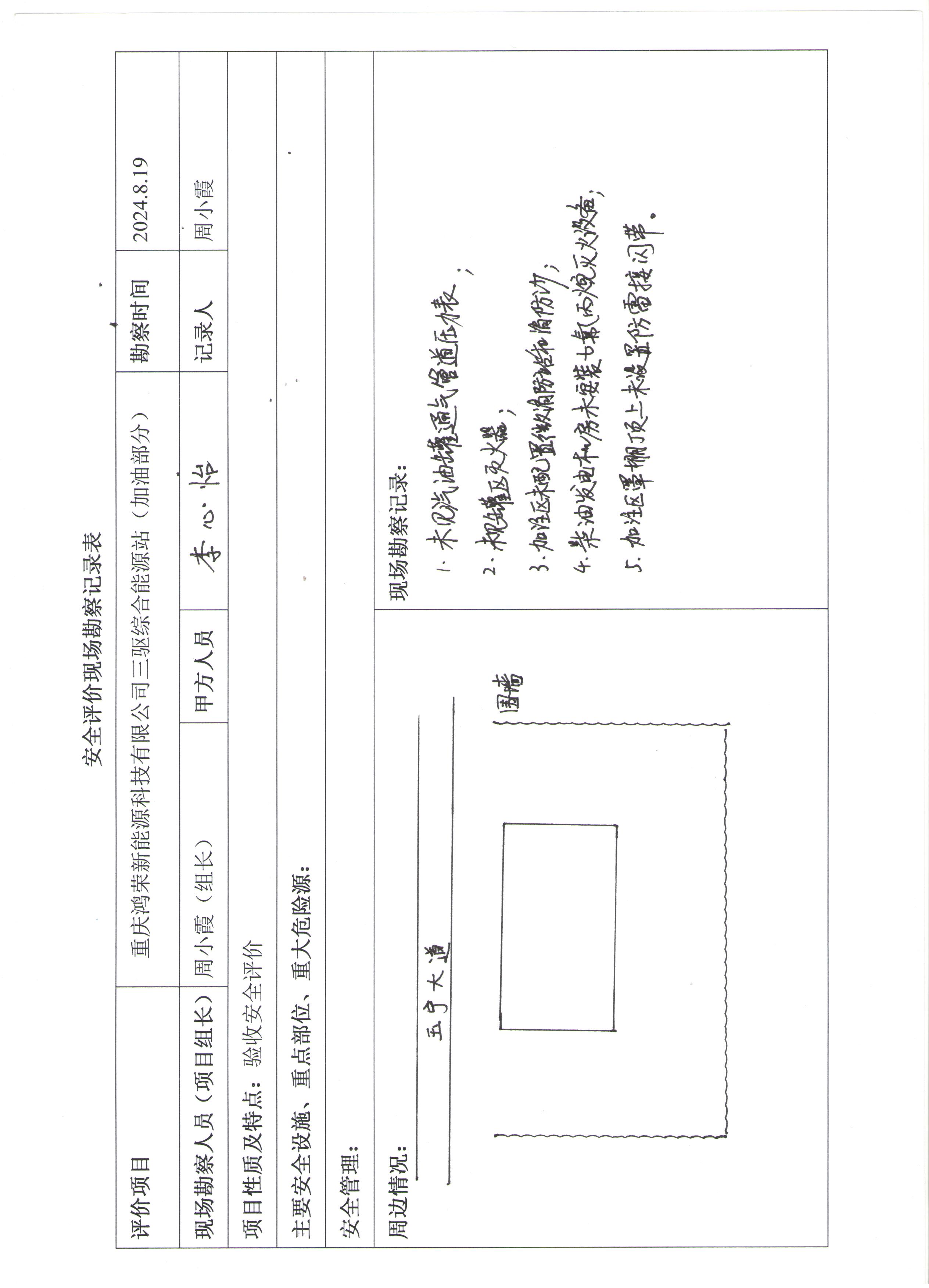 項(xiàng)目名稱 | 重慶鴻榮新能源科技有限公司三驅(qū)綜合新能源站(加油部分)安全驗(yàn)收評(píng)價(jià) | 合同編號(hào) | DA(渝)PJ-034 | |||||