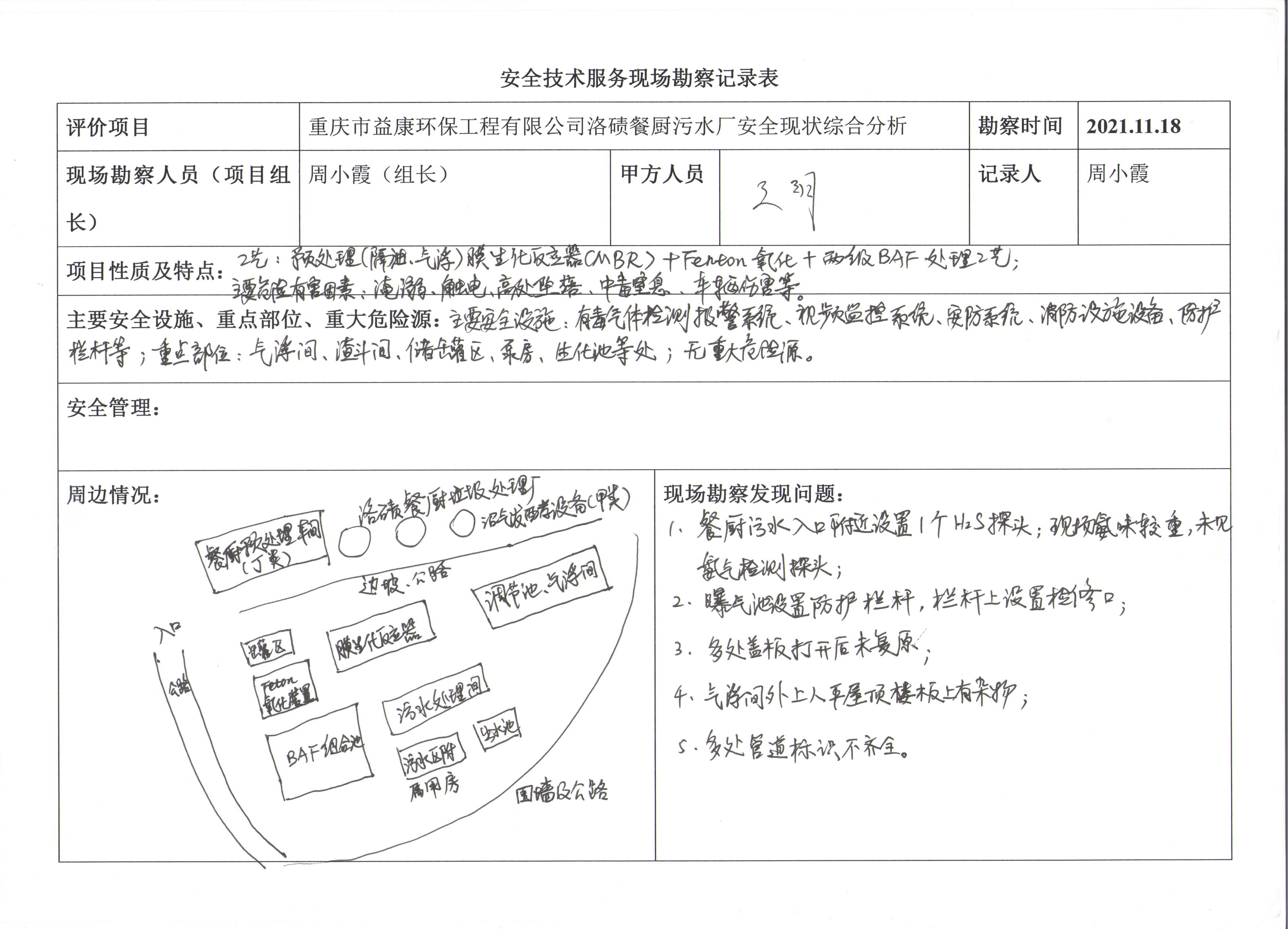 重慶市益康環保工程有限公司洛磧餐廚污水廠安全狀情況