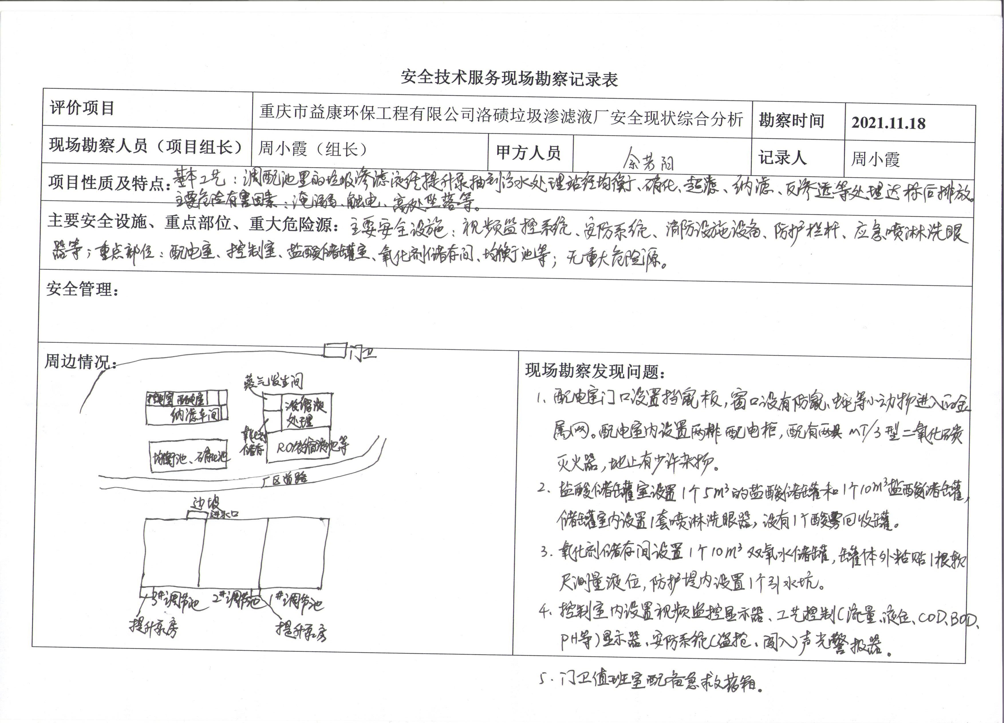 重慶市益康環保工程有限公司洛磧垃圾填埋場滲濾液處理廠安全現狀評價報告